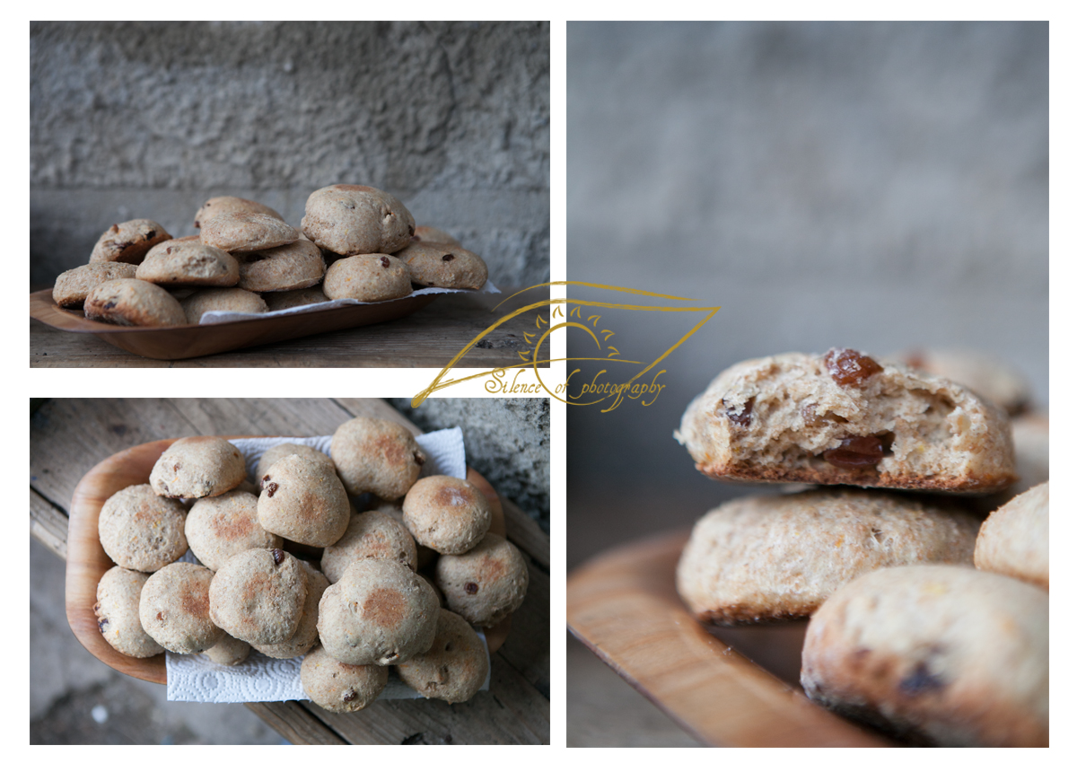 Am frământat aluatul din făină, drojdie, zahăr și lapte călduț. Am adugat uleiul, coaja de portocală, vanilia și stafidele.