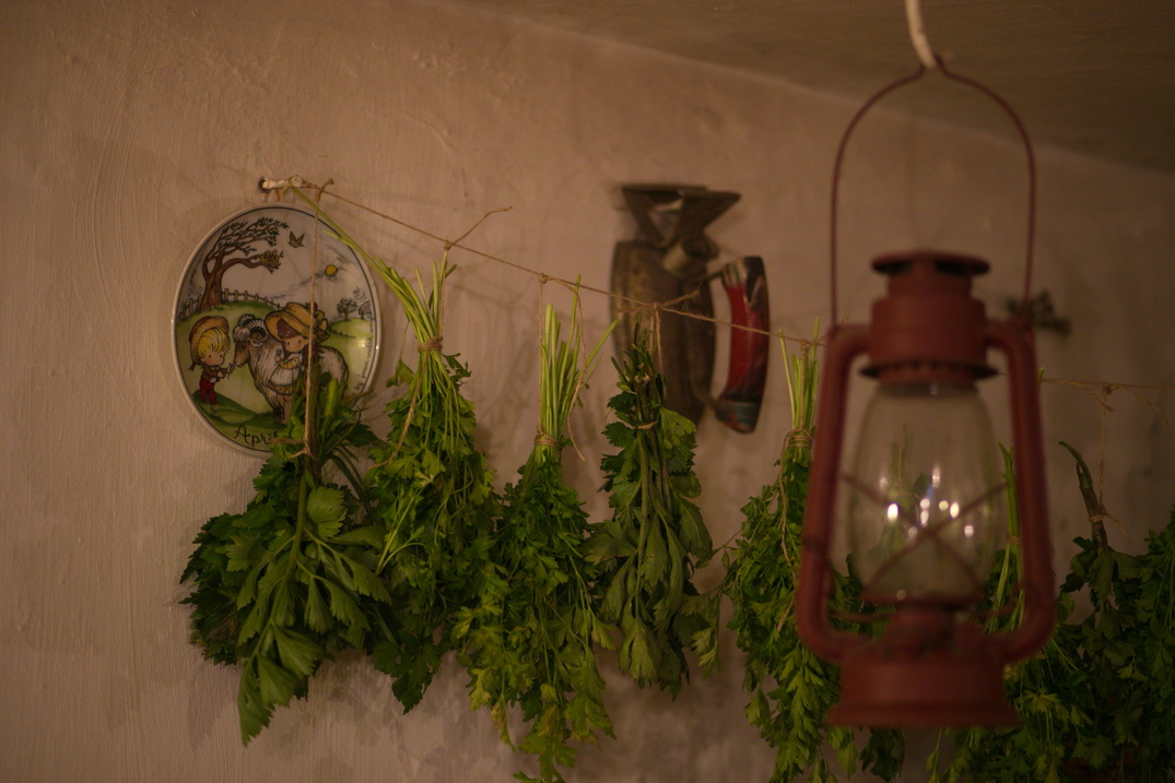 Am cules frunzele neatinse de frig și le-am înșirat pe o sfoară. În timp ce-și uscă verdele ne ascultă poveștile. Iau din ele cu mulțumire și le așez în oala de lut, peste legumele ce fierb.