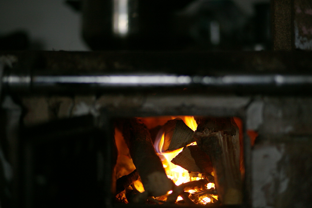 Din când în când se mai aude câte un lemn trosnind sub plită, între cărămizi.