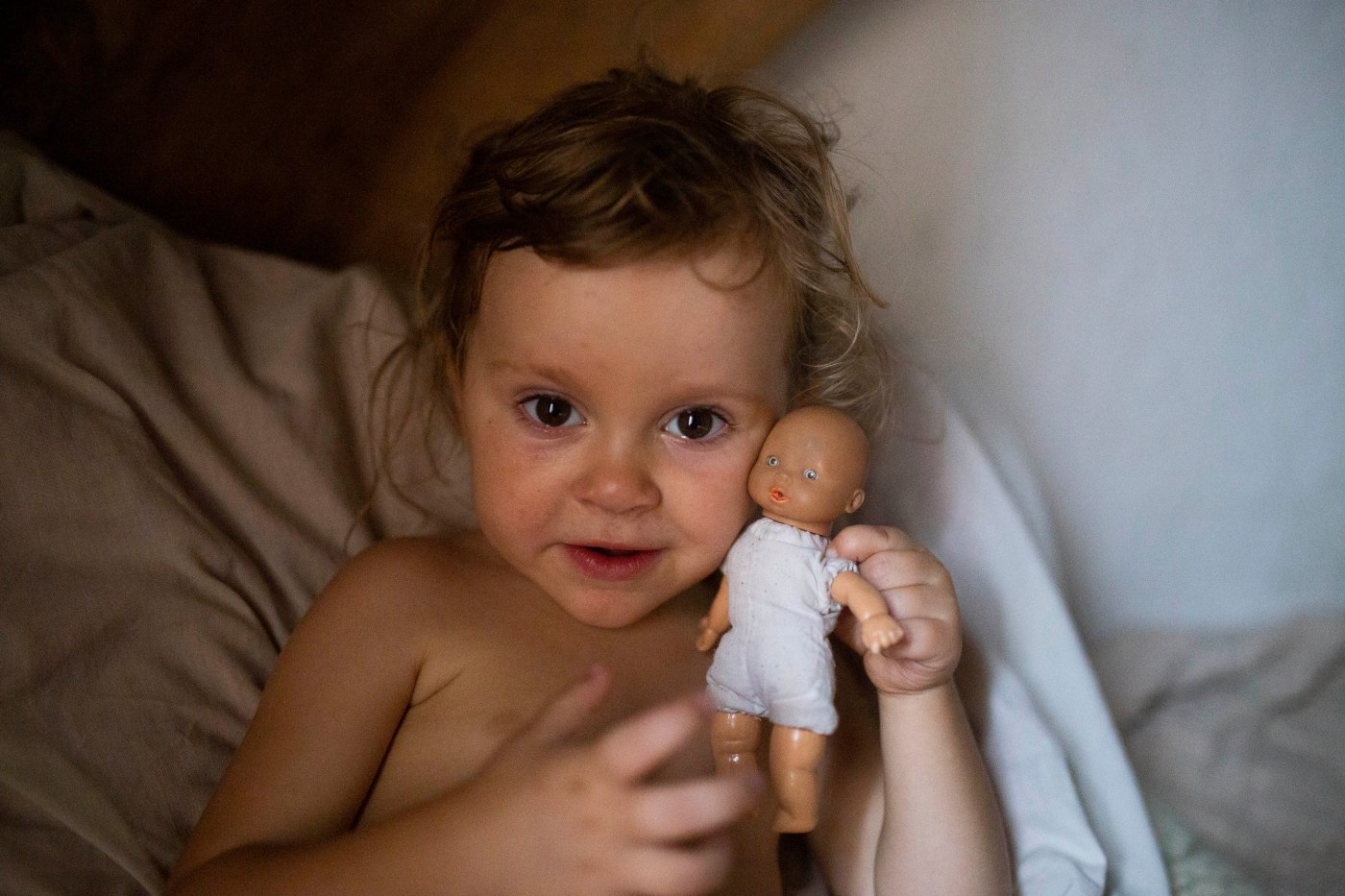 Și în patul acesta o îngrijesc acum pe Anastasia, fetița mea de aproape 3 ani.