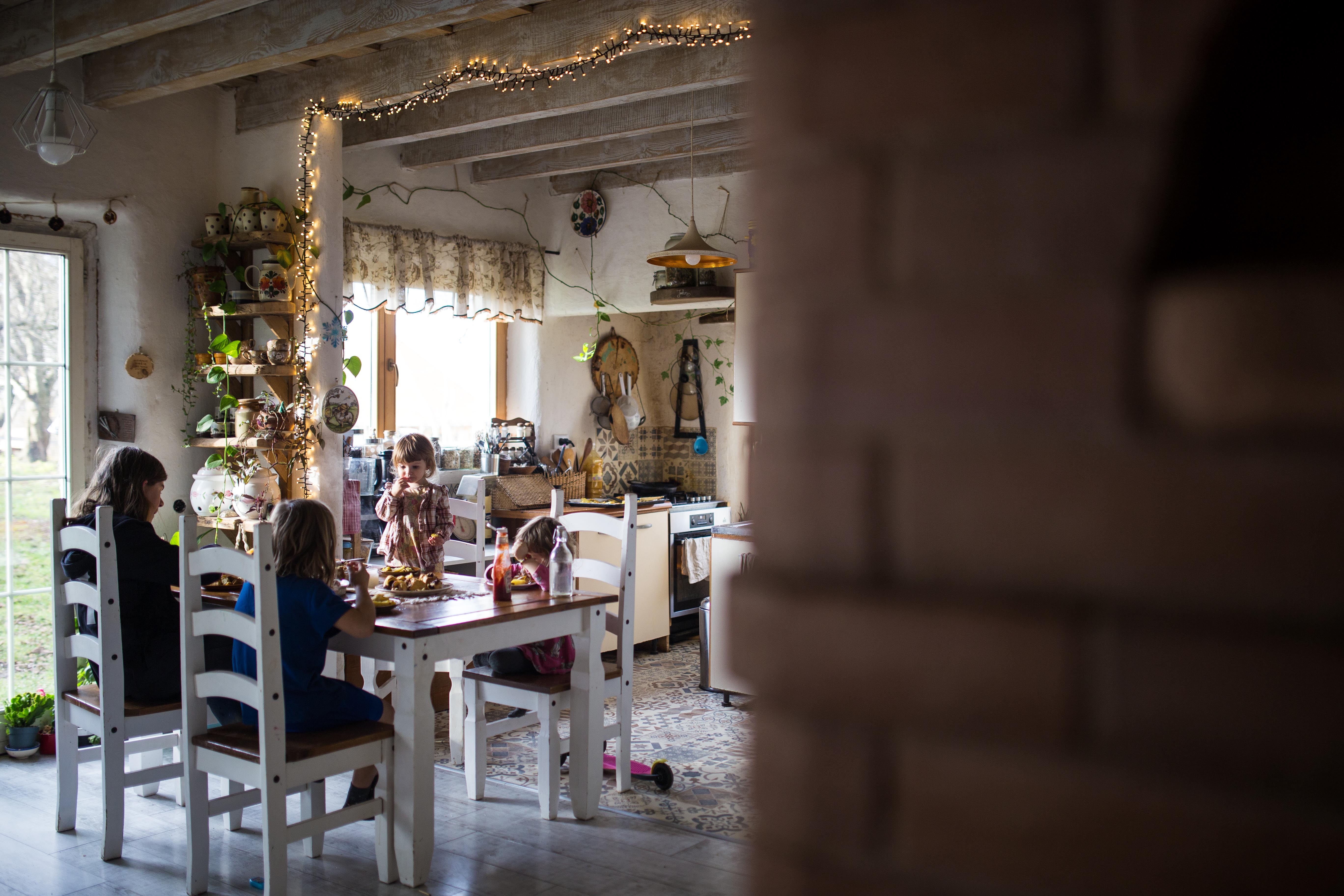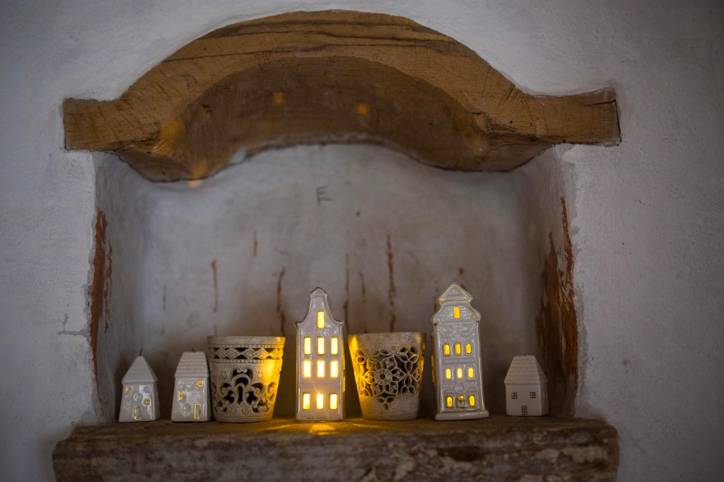 Pe masa din mijlocul casei arde o lumânare.