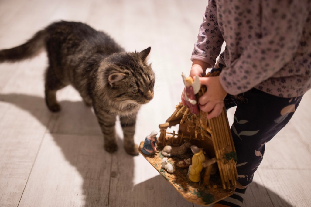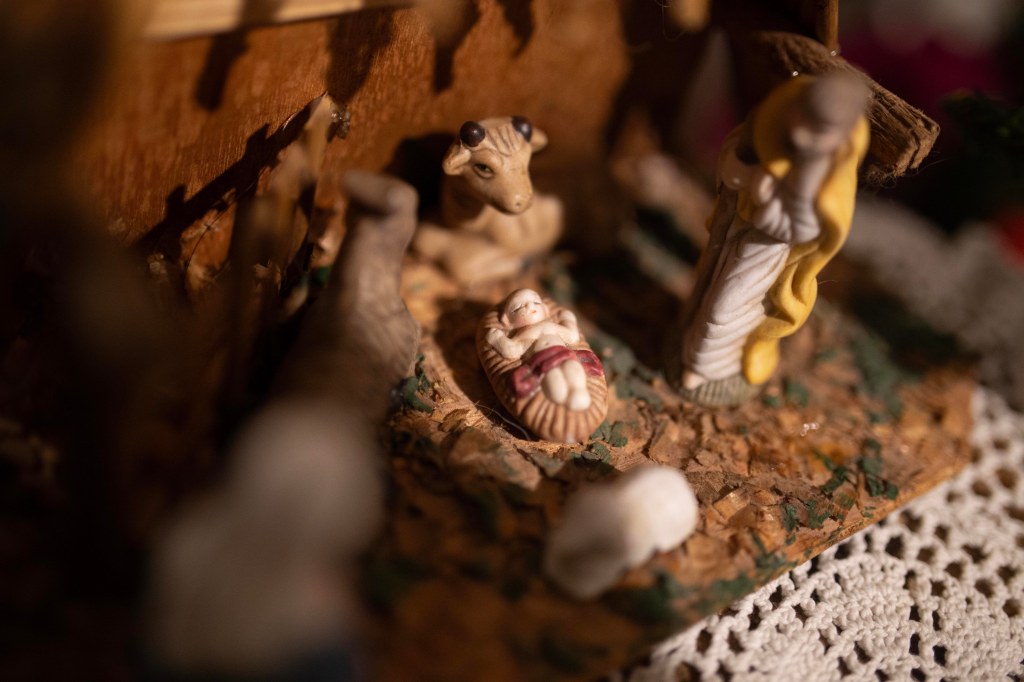 Fetiţa cea mică se joacă singură in jurul meu. Privirea mi se oprește pe mâinile ei care mângâie pruncul din iesle. Stă minute in șir să privească și să mângâie figurinele acelea puse pe butucul de lemn din casa noastră…cele care ne amintesc de cum a venit Hristos al nostru în lume.