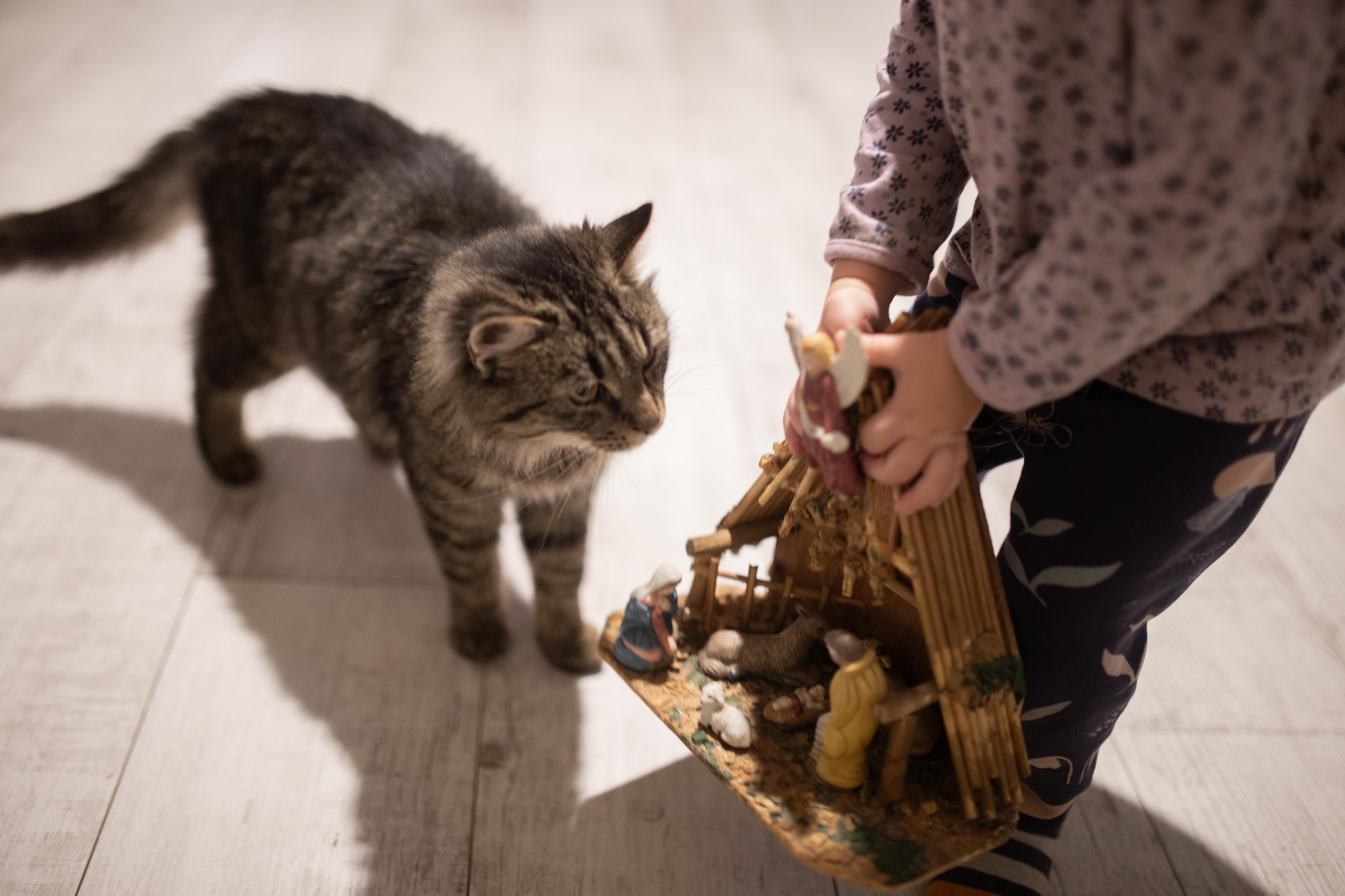 Pare că nu se poate sătura. O văd cum le duce și i le arată pisicii și apoi îi spune: ” – Uite! Uite!”.